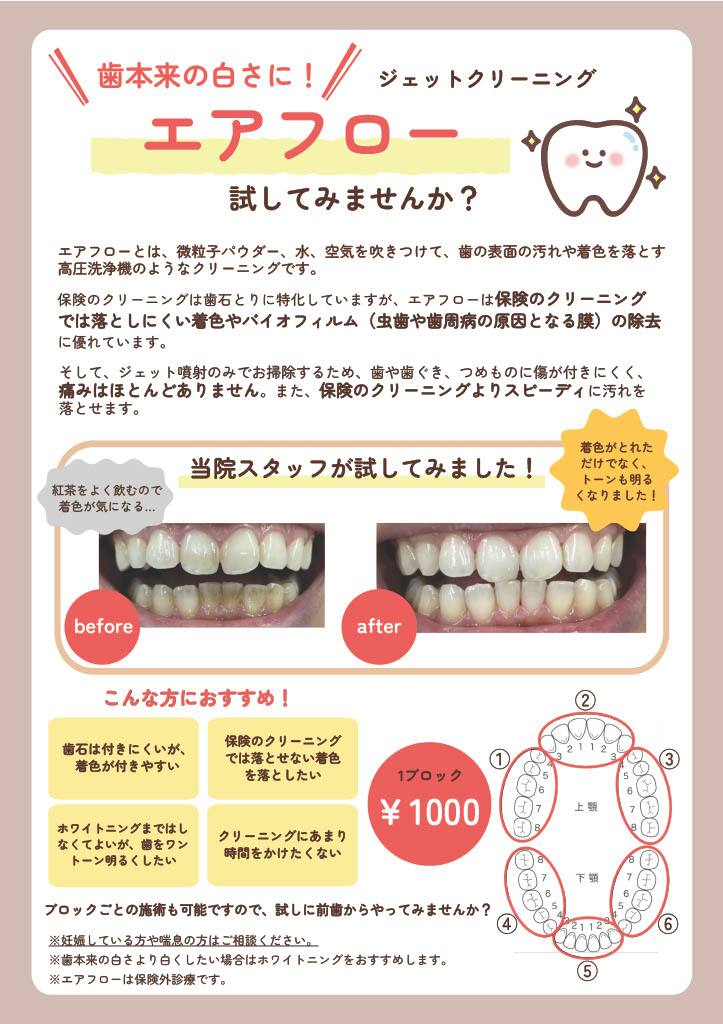 スピーディに歯の汚れを落とせるクリーニング「エアフロー」を導入しました。